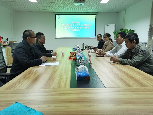 在次日12月12日,廣東省科學(xué)院化工研究所文武所長及產(chǎn)業(yè)技術(shù)孵化基地王飛副主任蒞臨我司指導(dǎo)工作,認(rèn)真聽取了我司技改項(xiàng)目的內(nèi)容報(bào)告,并參觀了公司生產(chǎn)區(qū)域,了解我司的生產(chǎn)工藝及設(shè)備情況,就雙方的未來合作方向和內(nèi)容進(jìn)行了深入的交流和討論。